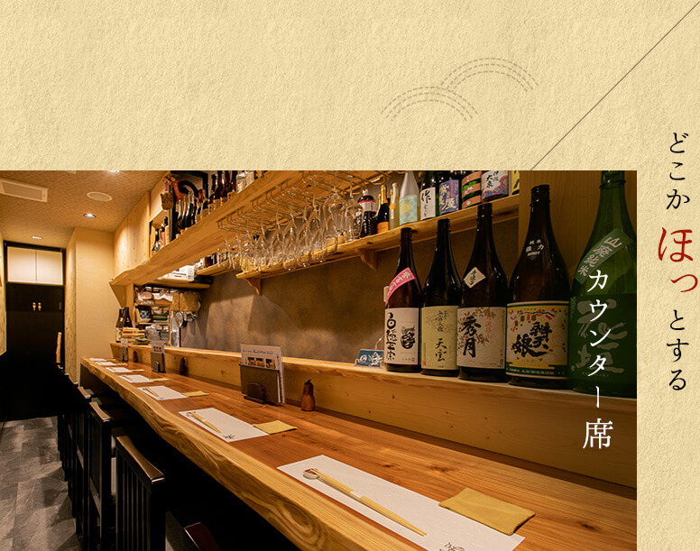 夫婦2人で営む当店では、基本、カウンター席をメインにご利用いただいています。それは、お客様1人ひとりに行き届いたおもてなしを心掛けているため。お料理のペースなどを見極めながら、距離感を大切に、心あたたまる時間をお届けいたします。