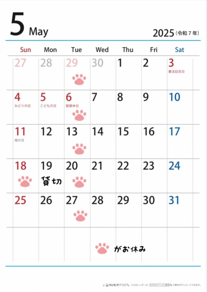 2025.5月の営業について 2025-04-24 13:24:53 2025.5月のお休みは、火曜日と18日です。5/19(月)は貸切です。GWは火曜日以外はopenしてます!ぜひお立ち寄りくださいませ