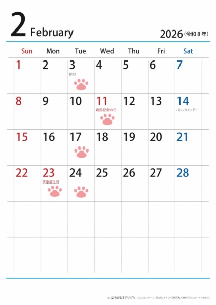 2026.2月のお休みは、3、11、17、23、24日です。